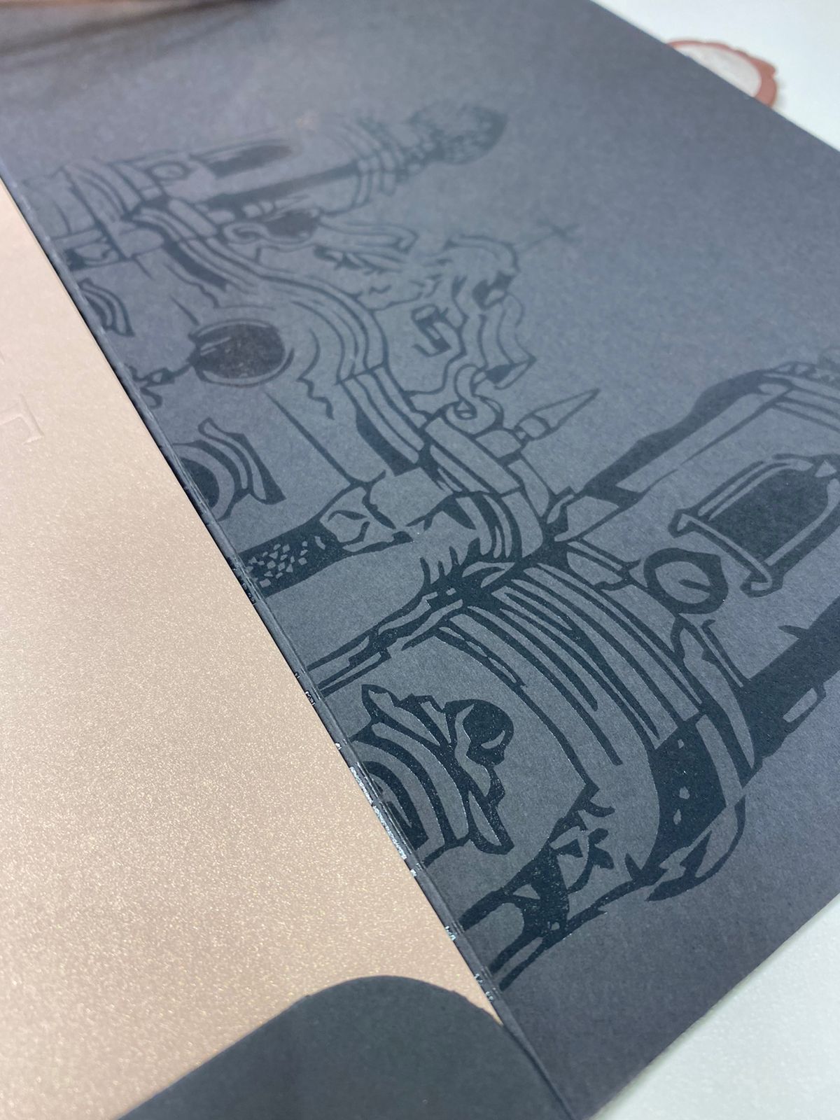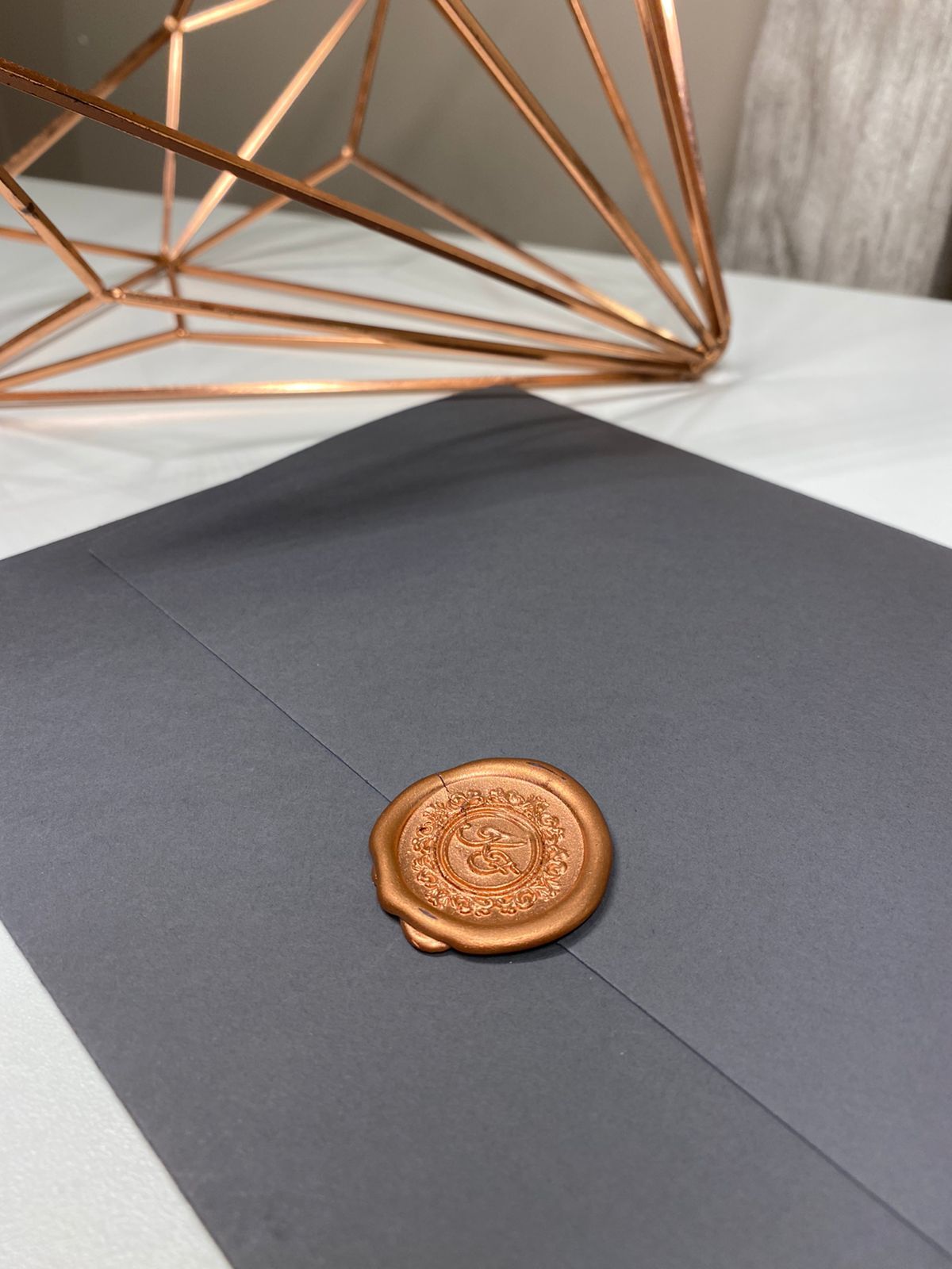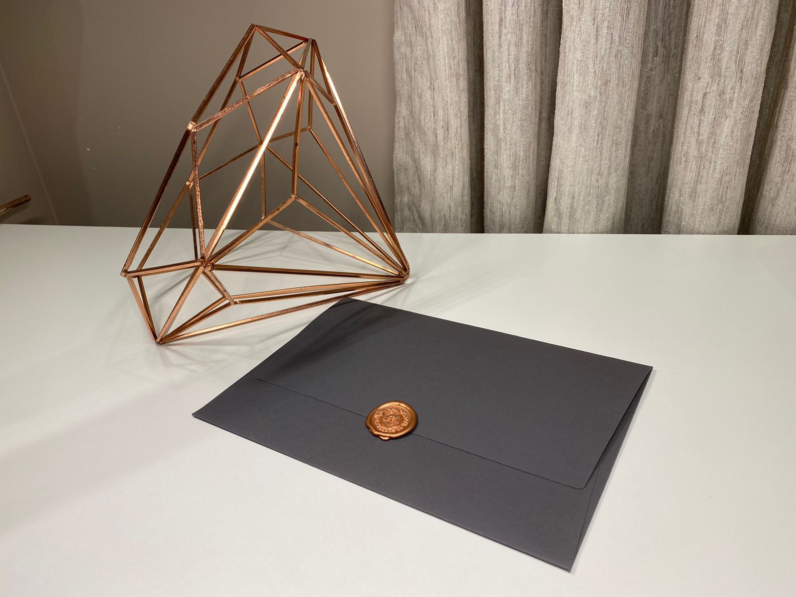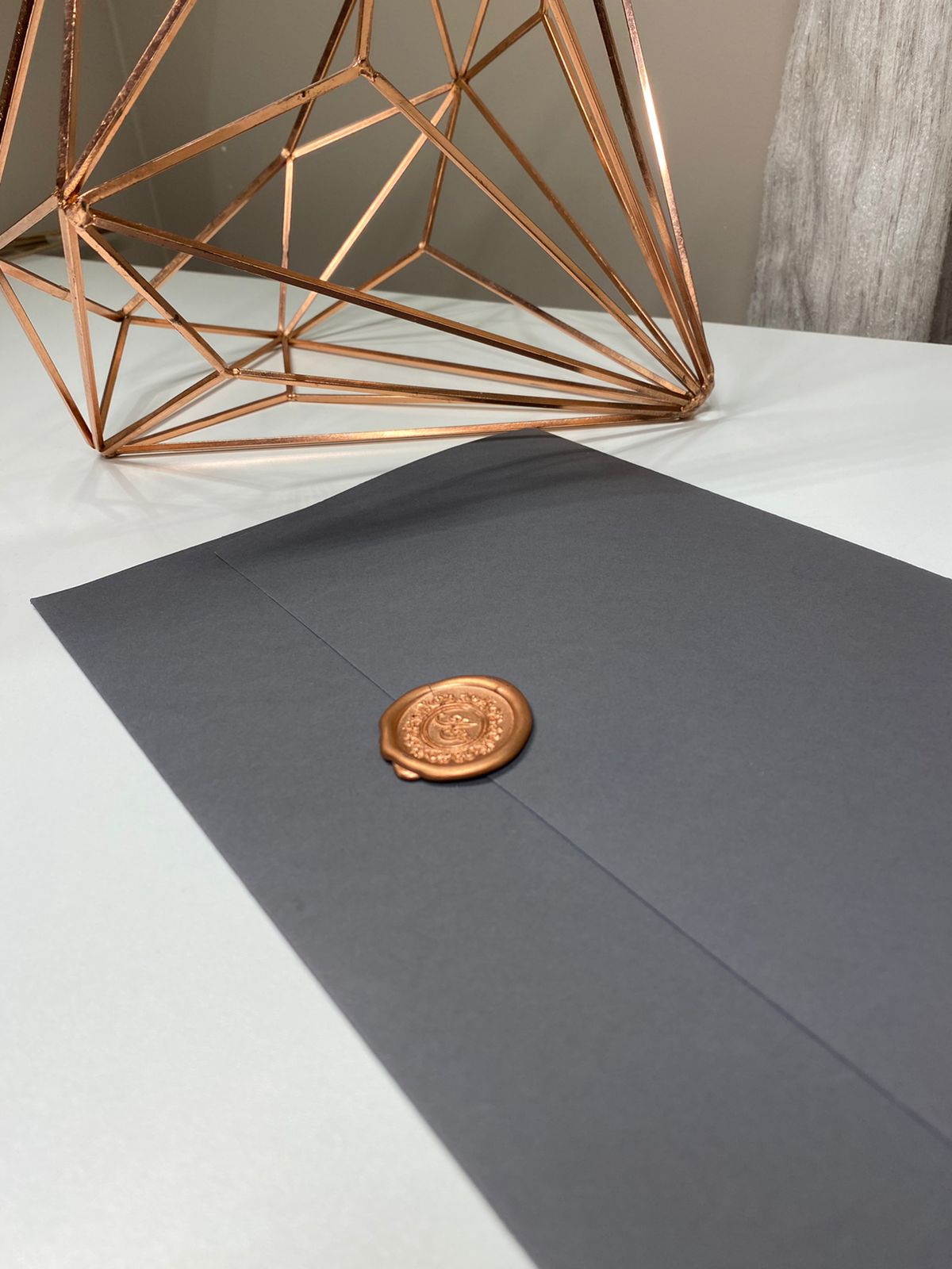 Envelope em Color Plus com Verniz UV reserva e Fechamento com Lacre de Cera.
