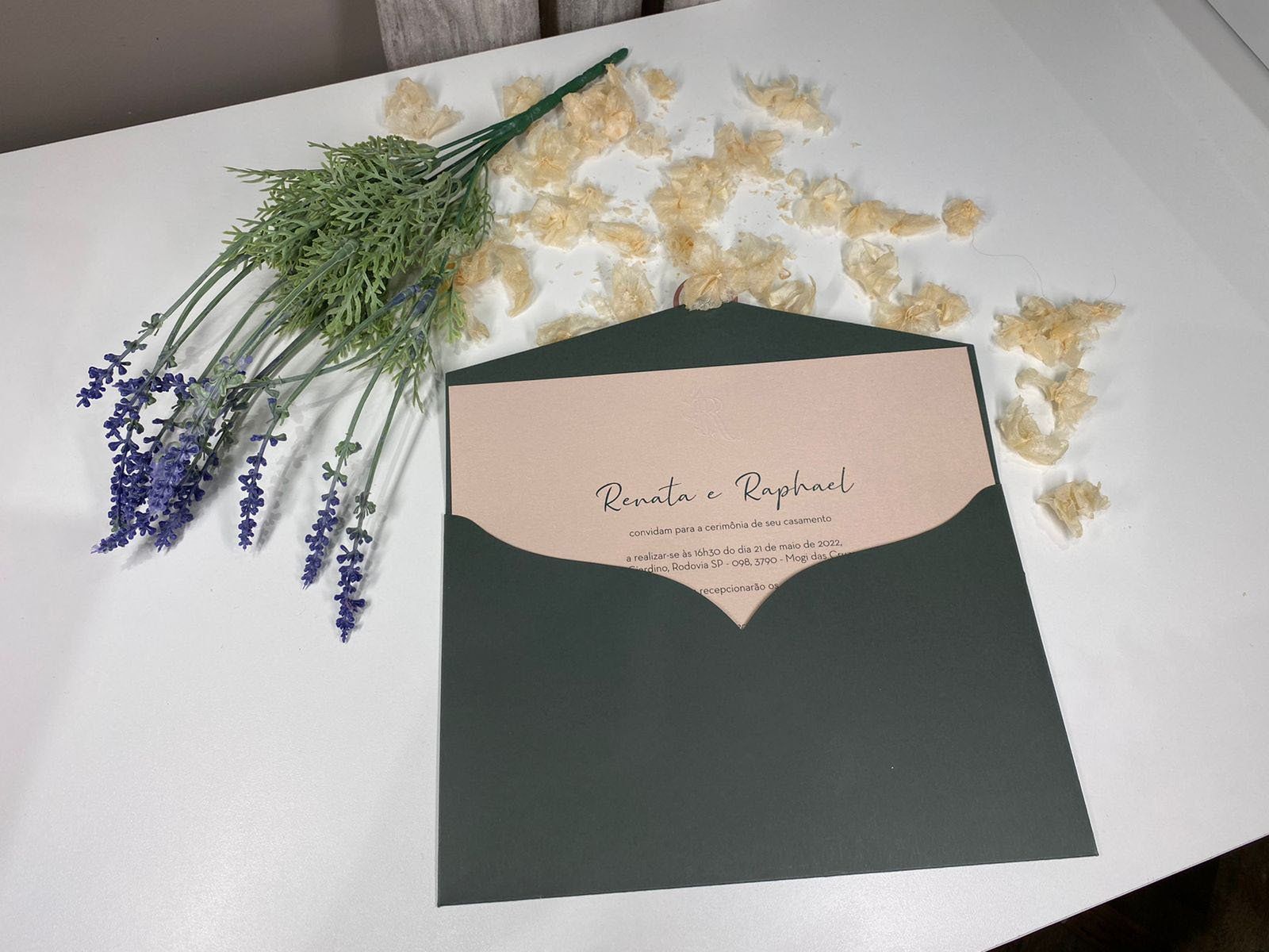 Convite em Courious Nude com impressão em Relevo e Monograma em Relevo Seco.